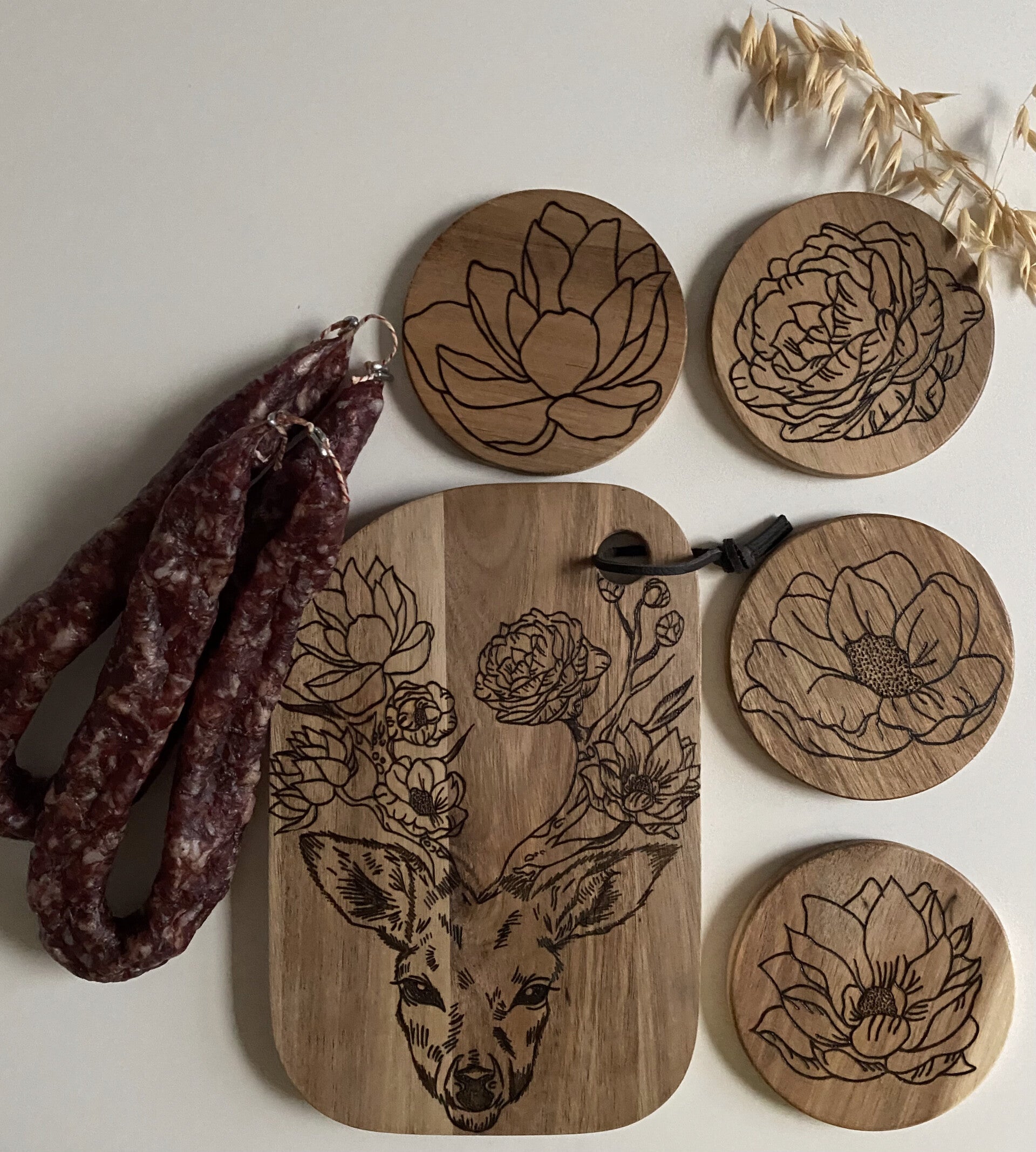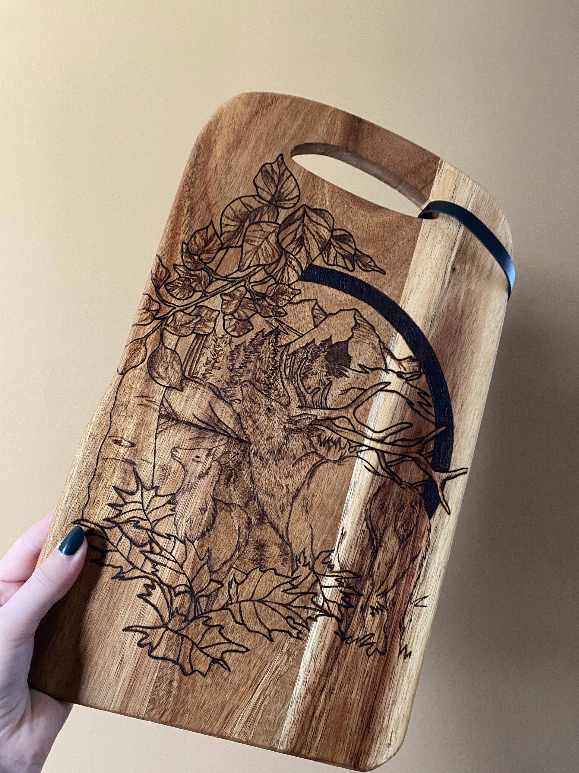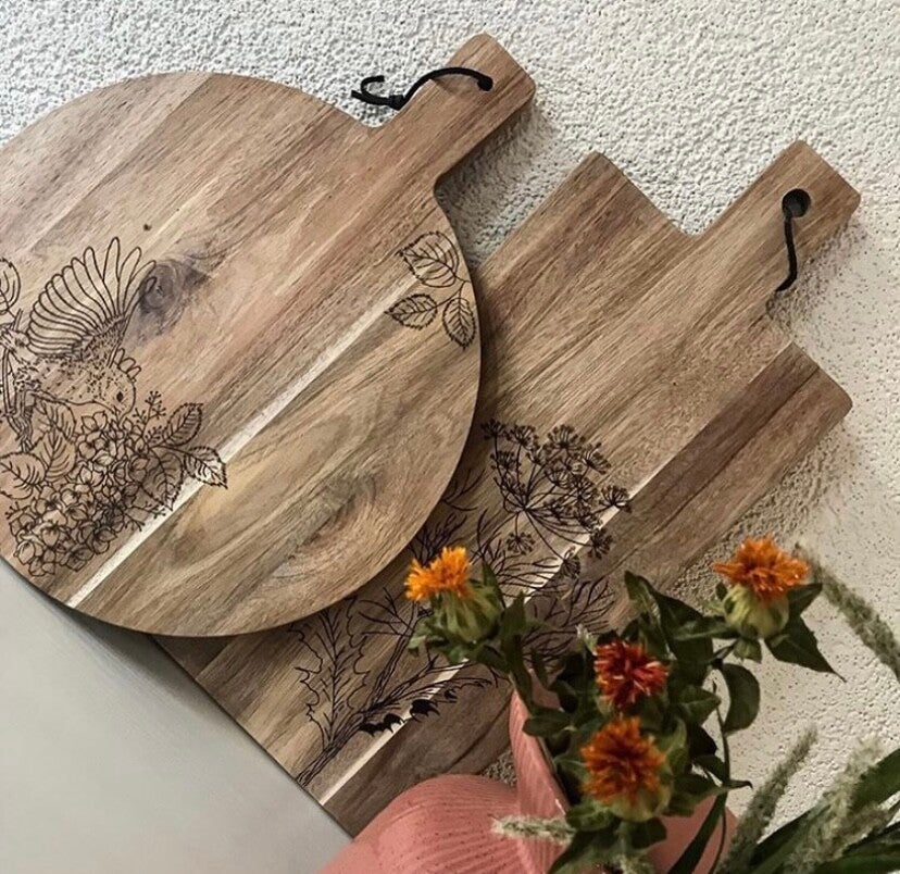 a Home of Food maakt geïllustreerde presenteerplanken van geschilderde tot gepersonaliseerde handgebrande planken.